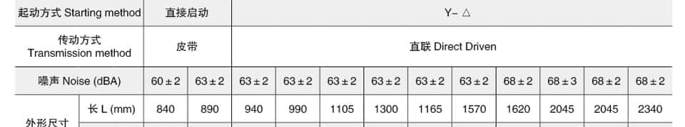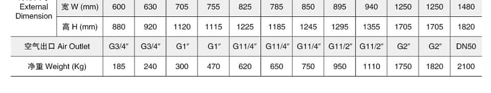 | 空氣出口 Air Outlet | DN65 | DN65 | DN80 | DN80 | DN80 | DN80 | DN100 | DN125 | DN125 | |||||||||||||