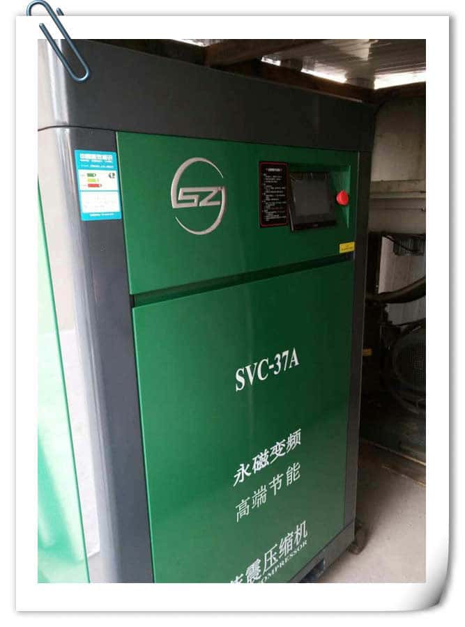 在薩震同事去該客戶工廠拜訪的時候,客戶剛好搬了新廠房,需要增加用氣的設(shè)備。于是薩震的業(yè)務(wù)員就實(shí)地考察了一番,根據(jù)他們新廠房的環(huán)境,和實(shí)際的用氣需求,向他們推薦了薩震SVC-37A永磁變頻空壓機(jī),客戶決定一試。