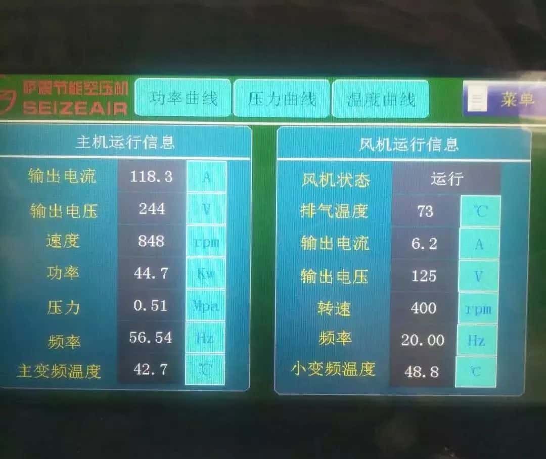 空壓機好不好,看看運行數(shù)據(jù)就知道。薩震空壓機產(chǎn)氣量多,壓力可以定制,用多少給多少,沒有絲毫浪費,使用薩震空壓機的這段時間,廠里效益高了,更有市場競爭力了,你說能不高興么!
