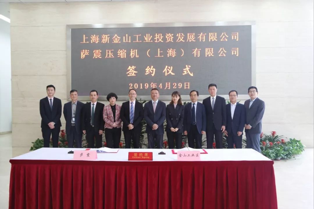 上海新金山工業(yè)投資發(fā)展有限公司與薩震壓縮機(jī)有限公司共同舉辦了金山工業(yè)區(qū)土地簽約儀式,伴隨著薩震壓縮機(jī)(上海)有限公司總經(jīng)理程紅星與上海市金山區(qū)政府部門領(lǐng)導(dǎo)在土地合同上的落筆,也正式宣告薩震節(jié)能空壓機(jī)即將迎來一次新的發(fā)展里程碑。